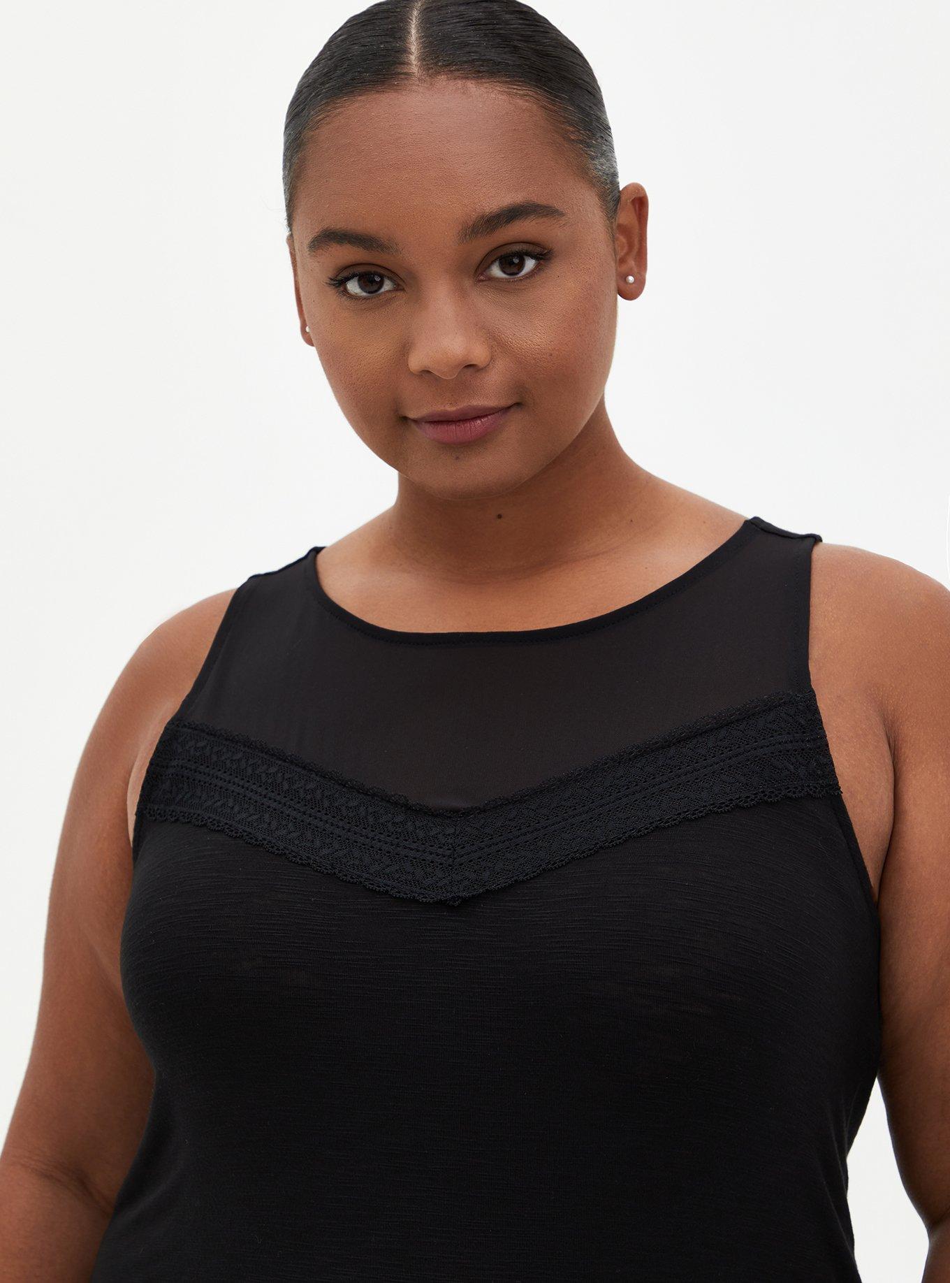 Plus Size Super Soft Crew Neck Mesh Yoke Tank Torrid